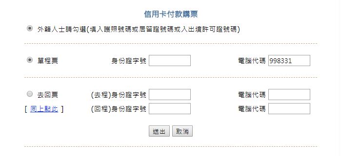靠!又要再填一次。這種感覺,根本就是一個政府部門,踢去另外一個政府部門。奇怪的是,單程票可以自動填寫,但去回票要自行填寫。多蠢。這個頁面還透露了一個玄機,有看到「外籍人士請勾選」那一欄嗎?那裡是自動勾選了,即是說,我們不能夠只用單一的網頁完成購票,一定要給政府部門踢幾腳。