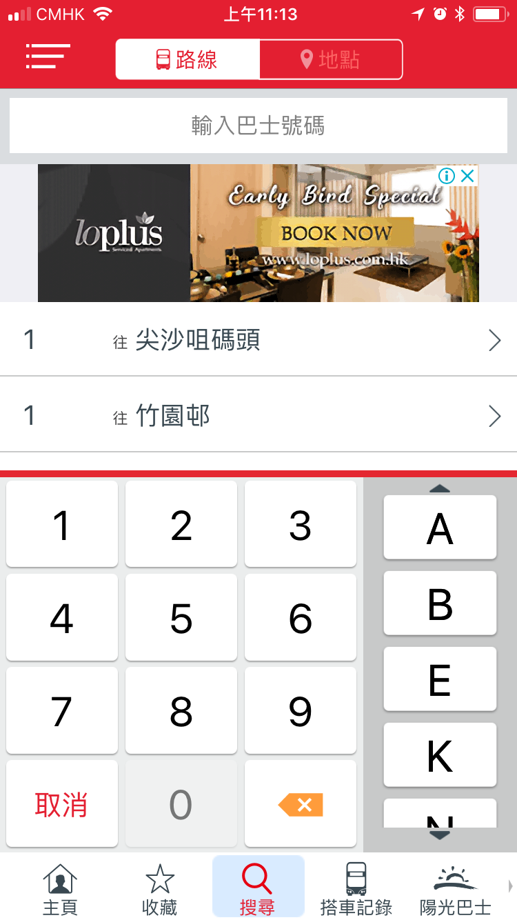 在乘車易找到該坐哪台車,就直接輸入巴士路線。很簡單,介面像計算機,沒有的路線不會出場在面版裡。