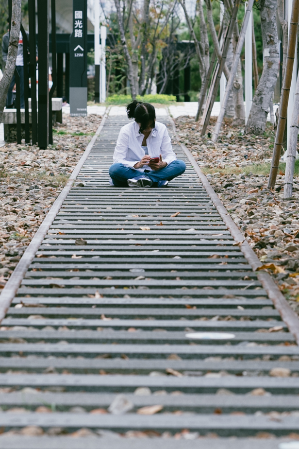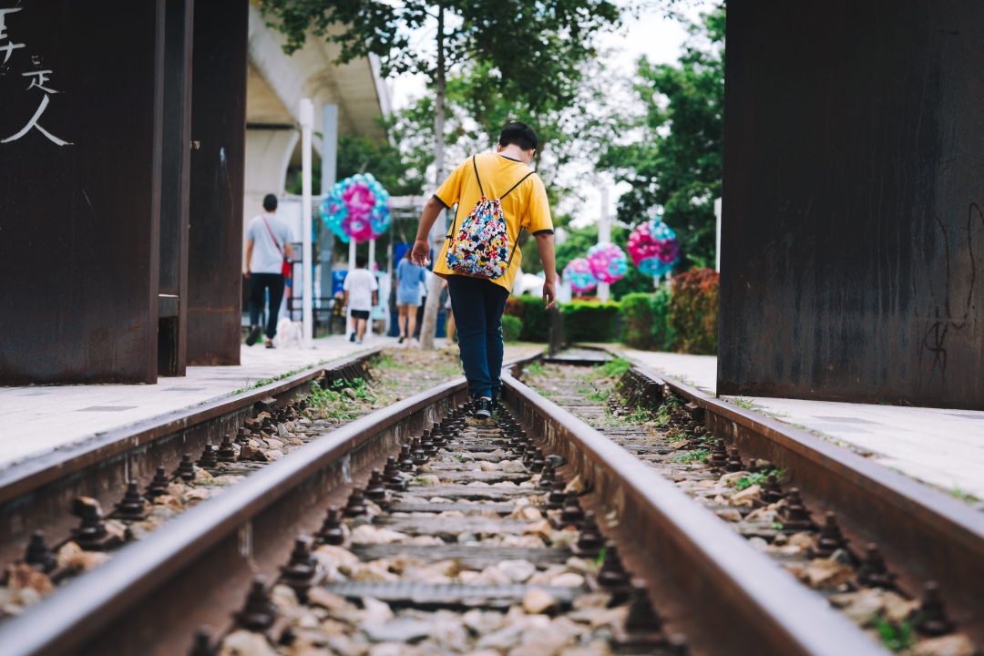 - 綠空步道的路軌很適用長焦距的鏡頭,把人物拍出壓縮感。