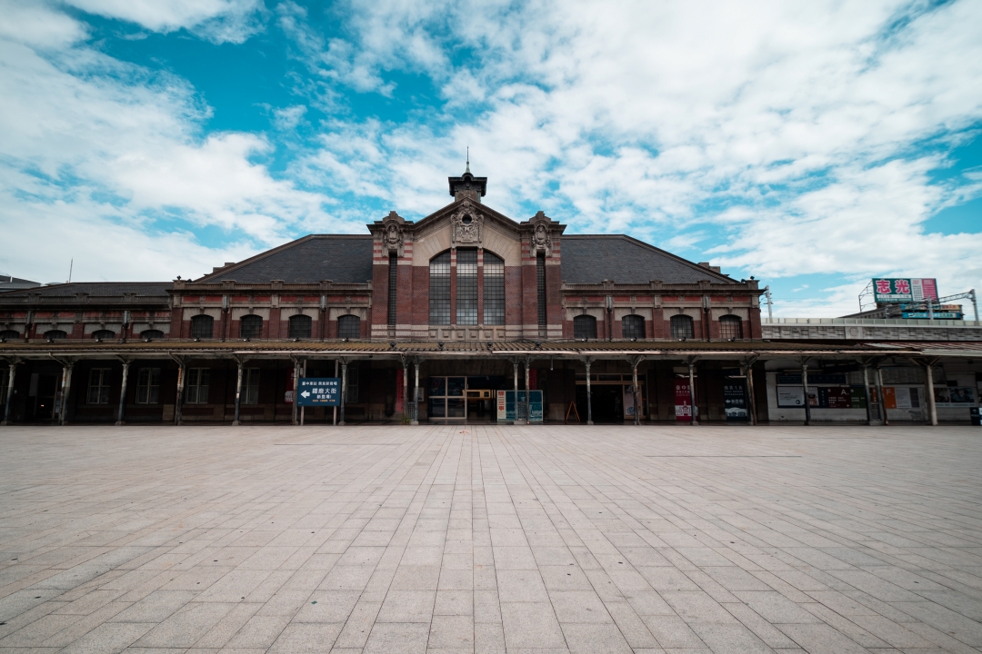 - 台中(舊)火車站立面,建議使用超廣角鏡頭讓人和建築一起拍進去。